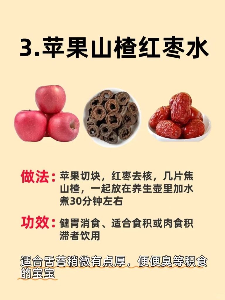 苹果山楂红枣水:适合舌苔稍有点厚,便便臭等积食的