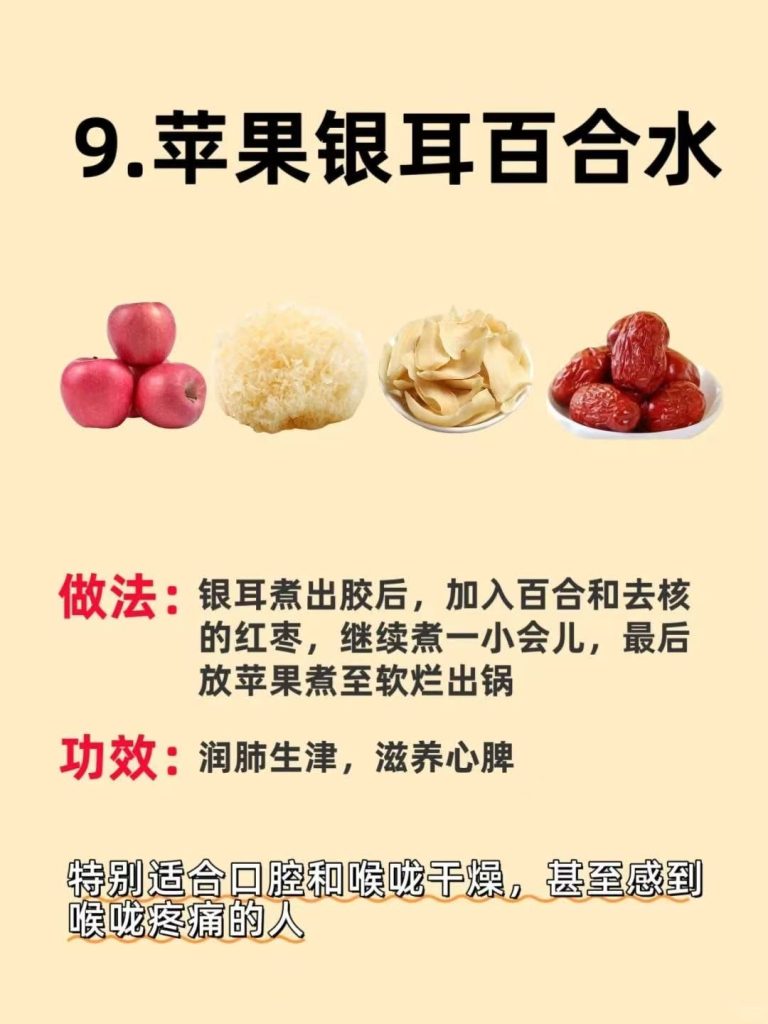 苹果银耳百合水:适合口腔和喉咙干燥、喉咙疼痛