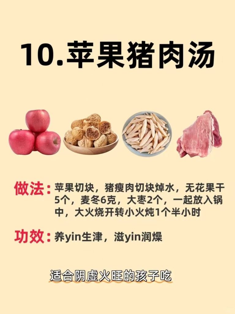 苹果猪肉汤:很适合阴虚火旺的