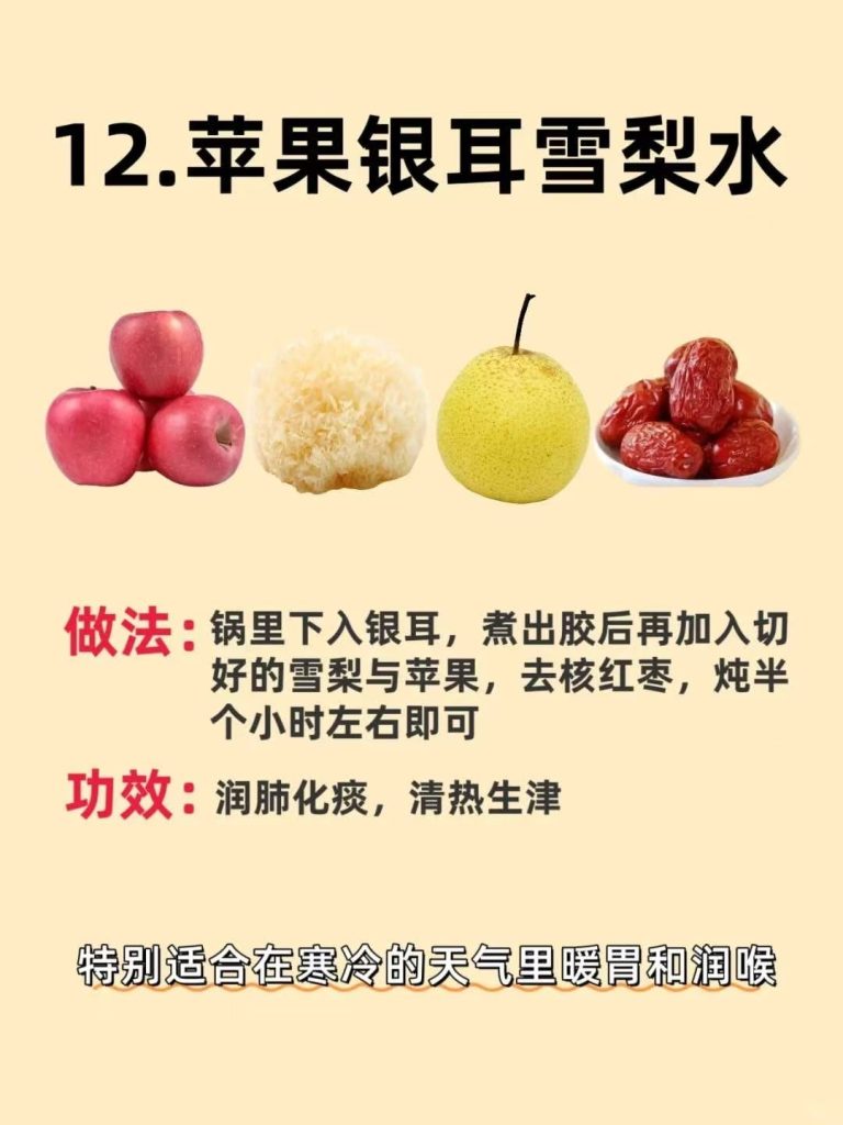 苹果银耳雪梨水:适合在寒冷天气暖胃和润喉